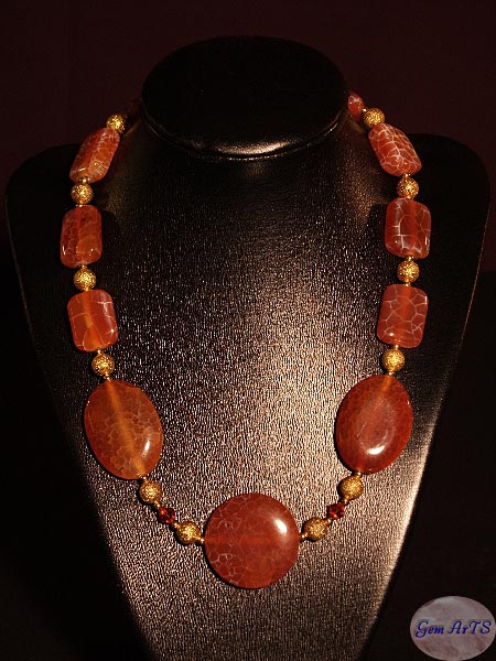 Feuerachat, rot, Scheiben, 30 mm Feuerachat, rot, ovale Scheiben, 25x35 mm Feuerachat, rot, Rechtecke, 15x20 mm Swarovski Glasschliffperlen bicone, 6 mm (Indian Red) Goldkugeln (vergoldet) gefrostet, 8 mm Goldperlen (vergoldet), 3mm