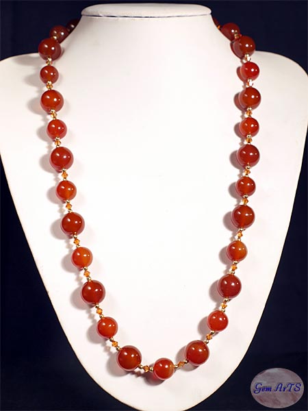 Karneol, 12 u. 14 mm Swarovski Glasschliffperlen bicone, 4 mm (Crystal Chili Pepper) Goldperlen (585er Gold Filled), 3 mm